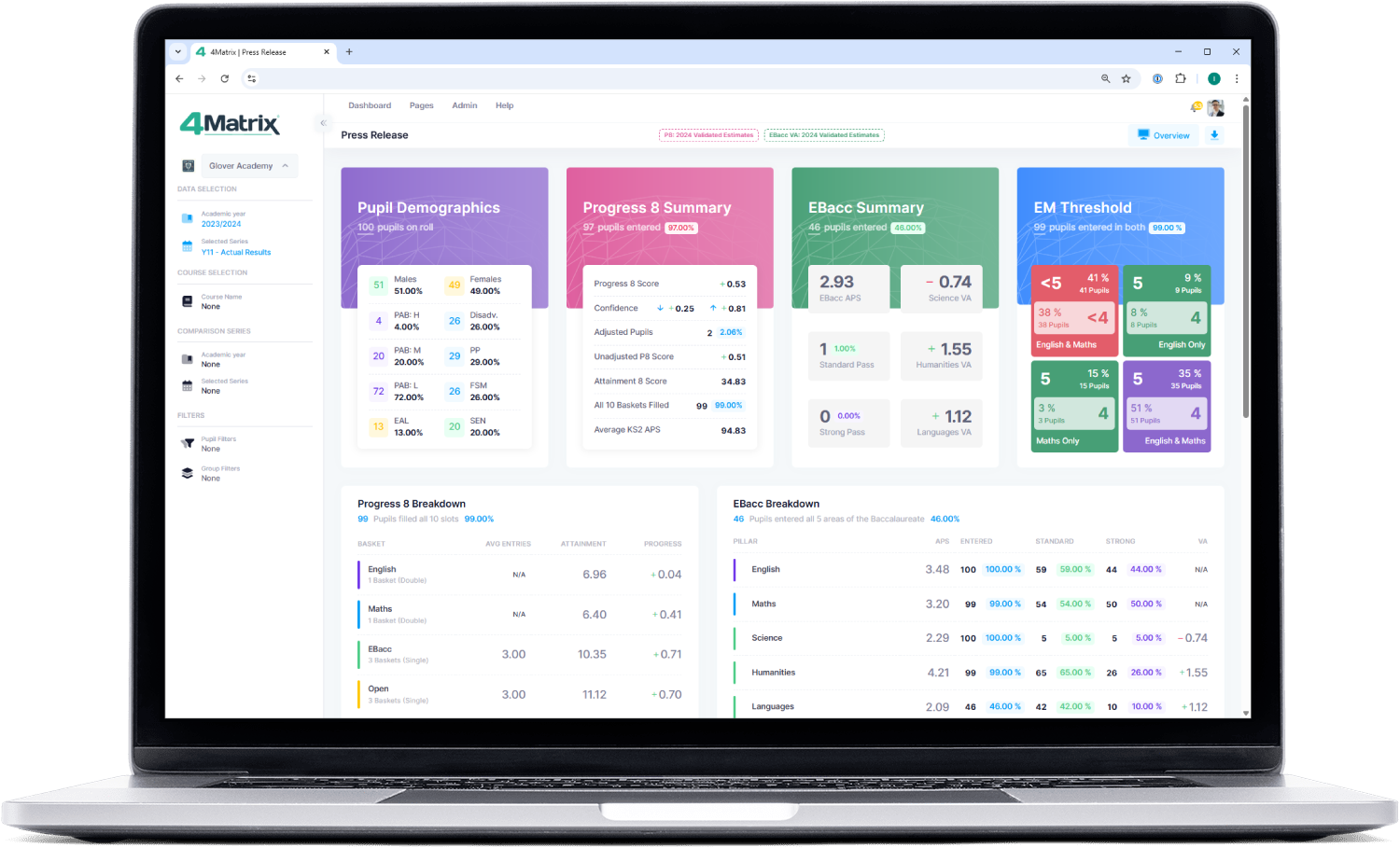 I would absolutely recommend 4Matrix. When the DfE change data it’s reflected really quickly. I can compare this year’s results to last year’s and monitor trends throughout the year. Not only does it save us time, it also allows us to accurately examine our outcomes.
