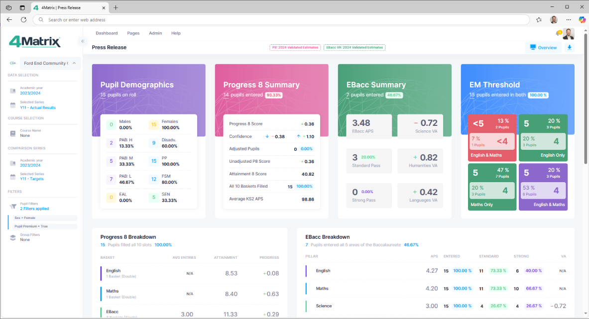 I would absolutely recommend 4Matrix. When the DfE change data it’s reflected really quickly. I can compare this year’s results to last year’s and monitor trends throughout the year. Not only does it save us time, it also allows us to accurately examine our outcomes.