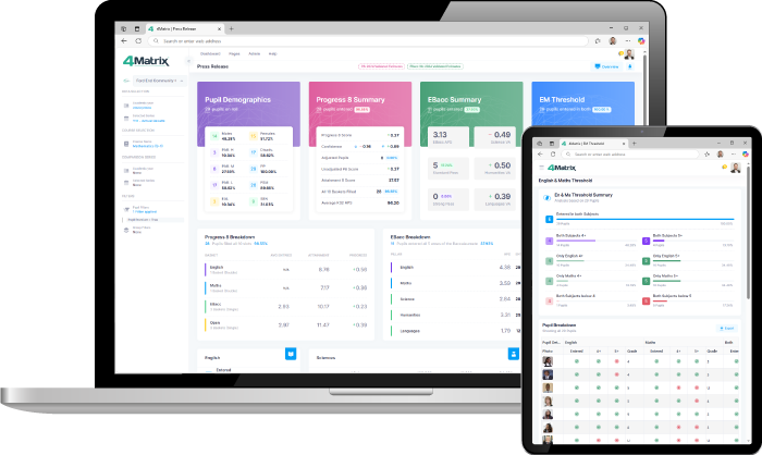 4Matrix Cloud: For secondary schools, the annual licence fee is £1495 + VAT for KS3/KS4 analytics, and £1995 + VAT for KS3/KS4/KS5* analytics. If you are a MAT with multiple schools, small school (less than 400 pupils) or a college/6th Form only*, please contact us for a quotation.