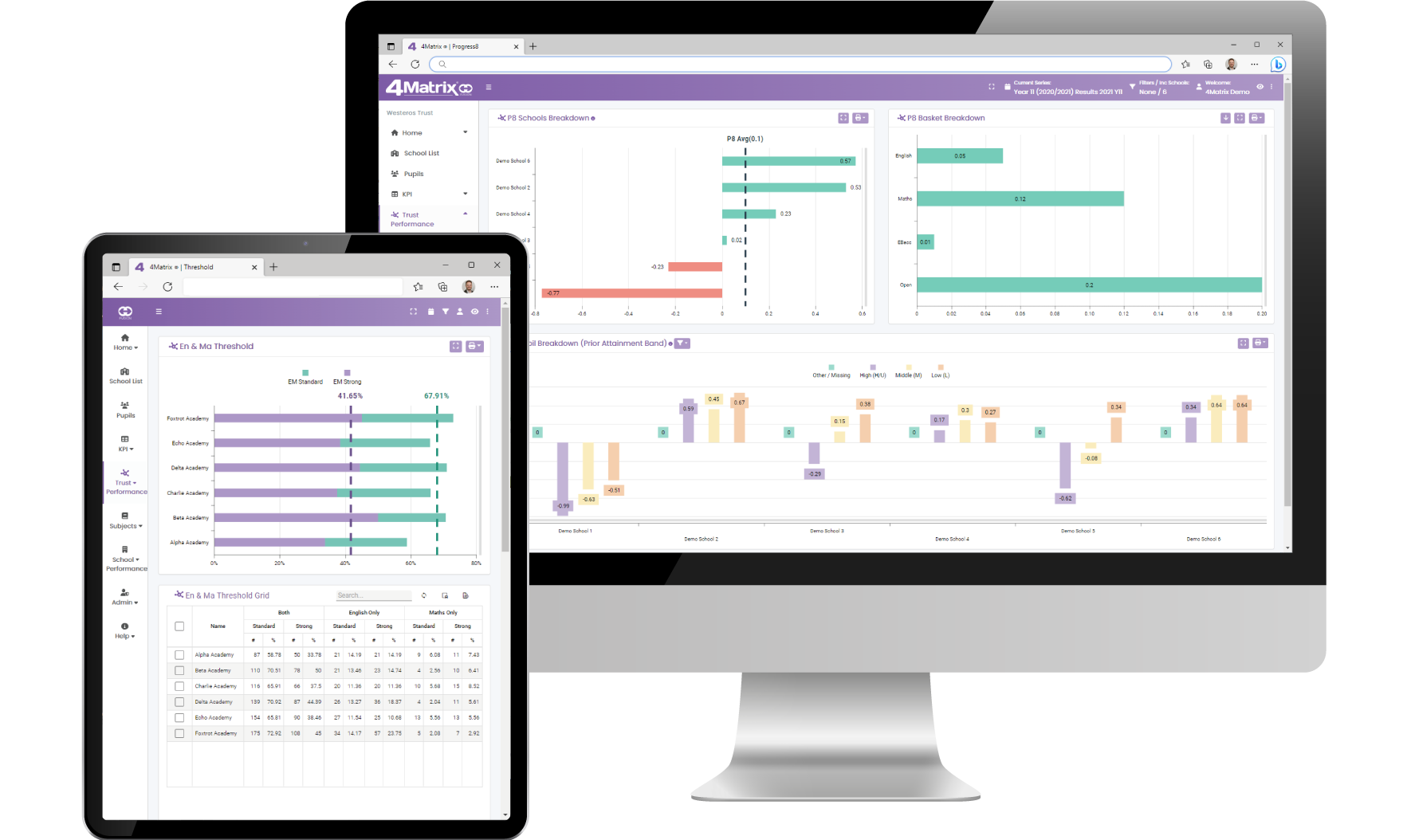 4Matrix Fusion: Fusion is cloud-based and hosted by 4Matrix. No personal information is stored – pupil names are removed at the point at which the school sends their data to the Fusion database.